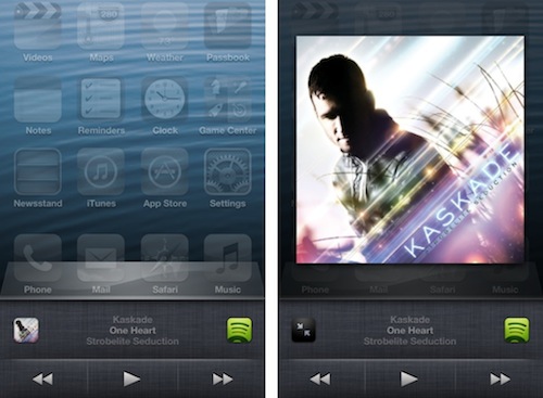 En parlant de musique, les contrôles ont subi un ravalement de façade de circonstance, et adoptent un aspect consistant avec le reste d’iOS 6 et encore une fois, plus complet que la solution Apple. Le titre du morceau de musique, le nom de l’artiste, l’album et la couverture se partagent la surface habitable de l’écran avec sobriété, l’exercice de style est réussi.