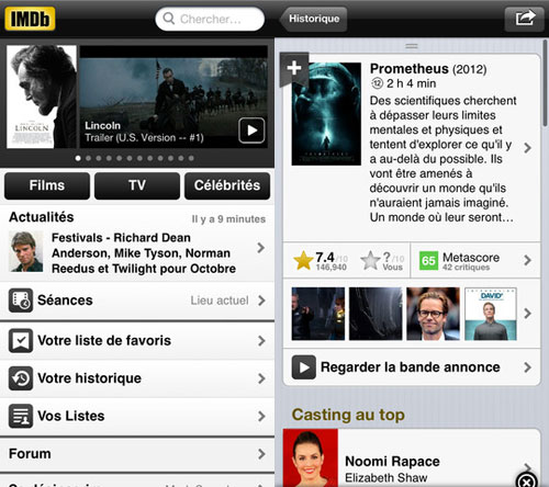 IMDb est une application que les cinéphiles apprécieront tout particulièrement. L’App vous permet en effet d’accéder à « la plus grande base de donnée au monde sur les films, séries TV et les informations sur les stars ».