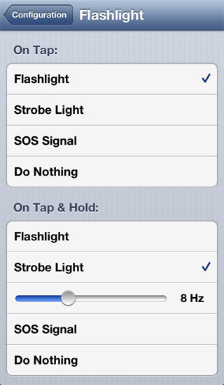 Le développeur a également repensé les toggles Respring et Flashlight. Il sera ainsi possible pour le premier toggle d’assigner différentes actions : une pour un tap simple et une autre pour un appui long sur le bouton.
