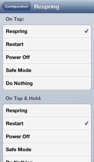 Avec le toggle respring il sera désormais possible de passer en safe mode, de redémarrer l’écran d’accueil, de redémarrer l’appareil ou de simplement éteindre l’appareil.