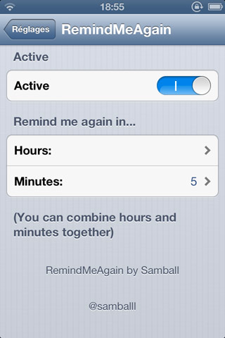RemindMeAgain est disponible gratuitement sur Cydia.