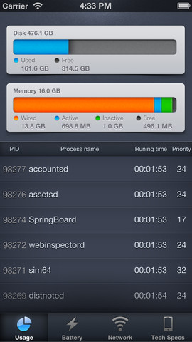 Retrouvez toutes les informations à propos de votre appareil : durée de la batterie, quelle application consomme le plus, traffic 3G…