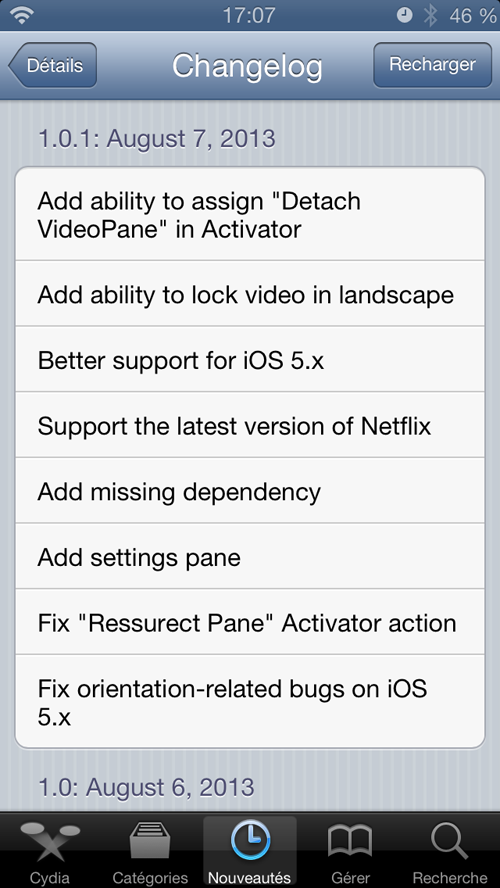 Ce tweak utilise le concept « Picture in Picture » et permet de détacher une vidéo d’un player natif afin de la mettre sous forme de petite popup déplaçable sur tout l’écran, permettant ainsi d’utiliser l’iPhone tout en regardant la vidéo.
