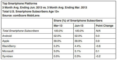 Malgré une hausse de 20%, iOS continue de perdre du terrain sur l’OS de Google qui, lui, culminé à plus de 187 millions d’unités écoulées en ce deuxième trimestre 2013.