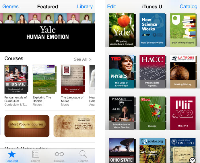 iTunes U reprend un design très proche de iBooks.