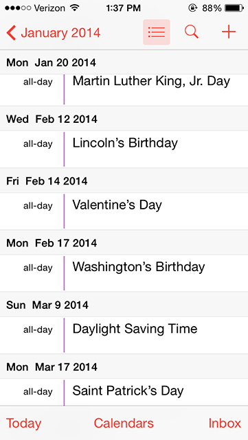 - Une nouvelle vue de type liste a été ajoutée à l’application Calendrier