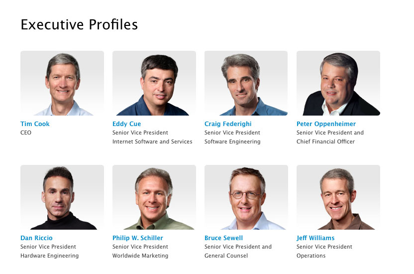 Ceci est plutôt surprenant, et il s’agirait peut-être d’un bug venant du site Apple. Chaque fois que l’un des dirigeants a été enlevé de la liste, sa page de profil l’a été également. En revanche, pour Johny Ive, nous pouvons toujours accéder à sa page personnelle.