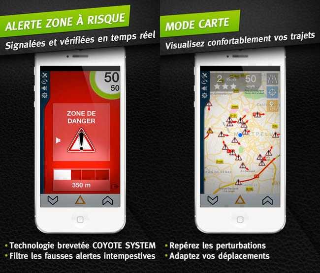 à application appstore gps icoyote iOS iphone risque zones