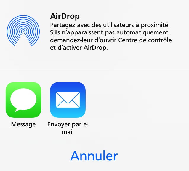 - par AirDrop (envoi vers un périphérique compatible iOS ou OS X)