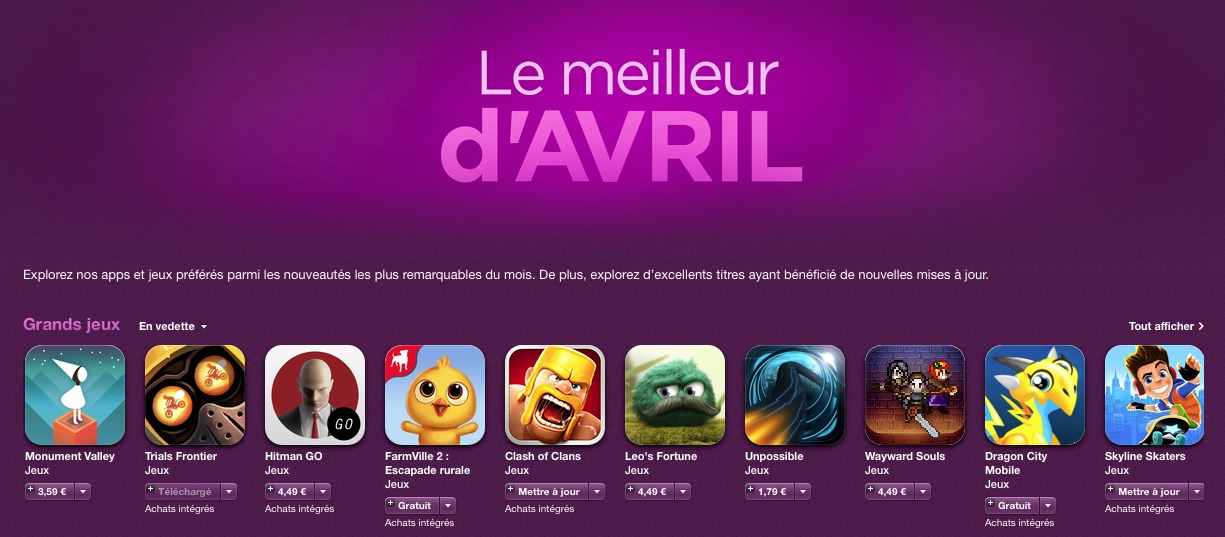 La firme de Cupertino a donc décidé de mettre en avant certaines applications du mois d’avril, vous permettant de découvrir les hits du mois, ou encore les applications possiblement utiles au quotidien. Les voici :